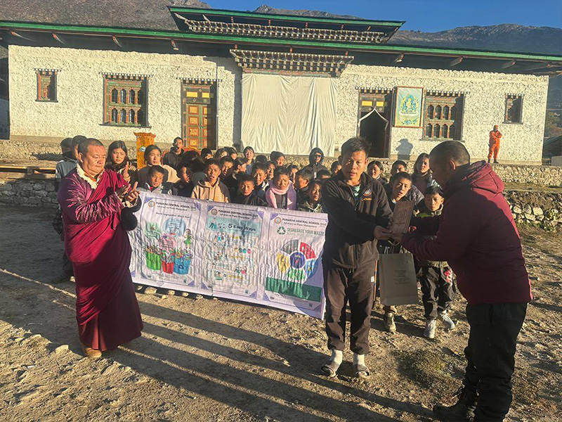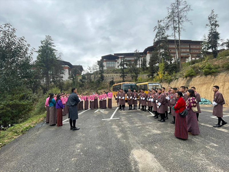 Students oversee environmental initiatives including waste management and tree planting for a greener future among Punakha's natural splendour.